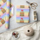 Dieses lustige und fröhliche Geburtstagsthema-Packpapier-Design zeigt eine Cartoon-Darstellung eines dreistufigen Geburtstagskuchens mit numeralförmigen Kerzen oben, die die Zahl "76", zusammen mit der Meldung "GLÜCKLICH 76. BIRTHDAY" und einem bearbeitbaren Empfängernamen zeigt. Der Hintergrund weist ein mehrfarbiges pastellfarbenes Regenbogenspektrum auf, das durch inspirierte Farbverlaufsmuster gekennzeichnet ist. Hochwertige Verpackungspapiere wie dieses können verwendet werden, wenn man ein Geschenk oder Geschenk zu Ehren von jemandem 76. Geburtstag gibt. [~Z0000622]