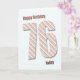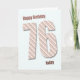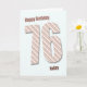 Eine sehr moderne 76. Geburtstagskarte. Diese Karte ist wirklich fabelhaft. Große Buchstaben in modernen Streifen auf blauem Hintergrund. Passen Sie Ihre individuelle Nachricht an.