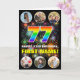 An der Vorderseite dieses kühnen und fröhlichen Geburtstagskarten-Designs steht die Zahl "77" mit einem farbenfrohen Regenbogenspektrum, inspiriert Farbverlaufsmuster, mit der Meldung "HAPPY 77. BIRTHDAY" und einem anpassbaren Namen, nach einem Muster, das durch das Platzen mehrfarbiger Feuerwerke inspiriert wird. In der Nähe von oben und unten sind Bilder, die individuell angepasst werden können, vielleicht mit Fotos der Familie und Freunden des Empfängers. Die Innenseite hat eine personalisierte Geburtstagsgrüßbotschaft, oder könnte gelöscht und leer verlassen werden, wenn eine Nachricht von Hand geschrieben werden soll. Eine fröhliche, anpassbare Geburtstagskarte wie diese kann zum Feiern des siebenundsiebzigsten Geburtstages von jemandem verschickt werden. (Fotografie © Storytree Studios, Stanford, CA.) [~Z000660]