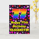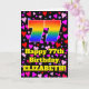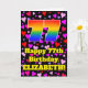 Die Vorderseite dieses fröhlichen und farbenfrohen Geburtstagskarten-Designs zeigt eine große Zahl "77" mit einem inspirierten Regenbogenspektrum-Gefälle, zusammen mit der Meldung "Happy 77 th Birthday", und einem personalisierten Namen. Der Hintergrund der Vorderseite zeichnet sich durch ein Herz-Formen-Muster aus, mit Farben wie Rosa, Rot und lila. Die Innenseite hat eine bearbeitbare Geburtstagsgrüßnachricht, oder könnte gelöscht und leer verlassen werden, wenn eine Nachricht stattdessen von Hand geschrieben werden soll. Eine fröhliche, personalisierte Geburtstagskarte wie diese könnte eine lustige Art sein, Geburtstagsgrüße an jemanden zu senden, der seinen siebenundsiebzigsten Geburtstag feiert. [~Z0000551]