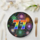 Diese farbenfrohe, lustige und fröhliche Papierplatte zeichnet sich durch eine große Zahl "77" aus, die eine inspirierte Farbgebung des Regenbogenspektrums enthält. Es zeichnet sich auch durch ein spannendes und lebendiges, aufstrebendes Feuerwerk inspiriert Muster aus. Es hat einen schwarzen Hintergrund. Teller wie diese können bei jemandem 77. Geburtstagsfeier, einem siebzigsten Party zum Jubiläum oder einer anderen 77. Veranstaltung verwendet werden. [~Z0000490]