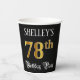 Dieses elegante und luxuriöse Geburtstagsdesign besticht durch einen individuelle Name und die Botschaft "78. Geburtstagsparty". Die große Zahl "78." hat ein in Gold inspiriert Farbmuster, die Wörter "Geburtstagsparty" sind im verzierten Skriptstil enthalten, und der Hintergrund ist standardmäßig schwarz (obwohl er angepasst werden kann). Extravagante, verzierte Papiertassen wie diese könnten bei einer Geburtstagsfeier zur Ehrung des 78. Geburtstages von jemandem nützlich sein. [~Z0000567]