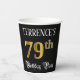 Dieses opulente und luxuriöse Geburtstagsdesign mit einem personalisierten Namen und der Meldung "79. Geburtstagsparty". Die große Zahl "79." hat ein in Gold inspiriert Farbmuster von Imitationen/Imitaten, und die Wörter "Geburtstagsparty" sind in verziertem Schriftzeichen gehalten. Der Hintergrund ist standardmäßig schwarz gefärbt (obwohl er angepasst werden kann). Extravagante, elegante Papiertassen wie diese können bei einer Geburtstagsfeier/einem Party zum 79. Geburtstag von jemandem nützlich sein. [~Z0000567]