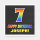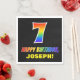 Dieses lustige, farbenfrohe und fröhliche Geburtstagspapier-Servietten-Design zeigt eine große Zahl "7" und die Meldung "HAPPY BIRTHDAY", beide mit einem inspirierten Regenbogenspektrum-Farbverlauf, zusammen mit einem kühnen gelben, anpassbaren Empfängernamen. Der Hintergrund ist schwarz. Spaß, personalisierte Geburtstagsthemen wie diese werden bei Jemandem zum siebten Geburtstag genutzt. [~Z0000476]