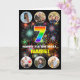 Die Vorderseite dieses optimistischen und kühnen Geburtstagskarten-Designs zeigt eine große Zahl "7" mit einem pulsierenden Regenbogenspektrum, inspiriert Farbverlaufsmuster, zusammen mit der Meldung "HAPPY 7th BIRTHDAY" und einem individuelle Name, auf einem bunten Feuerwerk inspiriert Muster. In der Nähe von oben und unten sind Bilder, die individuell angepasst werden können, vielleicht mit Fotos der Familie und Freunden des Empfängers. Im Inneren befindet sich eine personalisierte Geburtstagsgrüßbotschaft, oder man könnte sie löschen und leer verlassen werden, wenn eine Nachricht von Hand geschrieben werden soll. Eine freudige, anpassbare Geburtstagskarte wie diese könnte eine lustige Art sein, eine Geburtstagsgrüßbotschaft an jemanden zu senden, der seinen siebten Geburtstag feiert. (Fotografie © Storytree Studios, Stanford, CA.) [~Z000660]