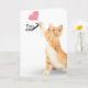 Goldkatze mit rosa Herzballon zum 7. Geburtstag auf weißem Hintergrund. Hintergrundfarbe kann geändert werden