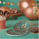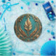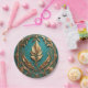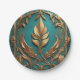 Schöne goldene Blätter auf einem Türkis Hintergrund zieren diesen 7" runden Pappteller.