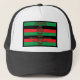 Un casquette Kwanzaa qui énonce les sept principes de la fête et leur signification dans les couleurs du vert, noir et rouge