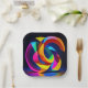 Colorful geometric shapes cover this 7" square paper plate. This unique design will add color and vibrancy to your party decor!