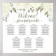 Ce beau tableau de sièges à fleurs de 7 tables présente un design boho chic rustique avec des roses d'aquarelle peints à la main, des fleurs et des fleurs dans les tons blanc, ivoire et crème, ainsi que des feuilles d'eucalyptus et la verdure du jardin. Le titre dit : "Bienvenue ! s'il vous plaît trouvez votre table" écrit en élégante calligraphie verte d'olive ou de sauge. Il y a un espace pour les noms du couple et la date du mariage en bas. Ce tableau a des affectations de table pour 70 invités avec 10 sièges par table. Une façon merveilleuse d'accueillir les clients à la réception tout en leur permettant de trouver facilement leur place.