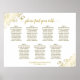 Cette belle carte de sièges mariages comprend 7 tables ou 70 places avec 10 places par table. Le design chic et sophistiqué est simple mais élégant avec du texte doré sur un arrière - plan blanc. Le titre dit : "s'il vous plaît trouvez votre table" dans une calligraphie en dentelle et les coins sont décorés avec des fraises en fausse feuille d'or dans un motif floral délicat. Une belle façon d'aider vos clients à trouver leurs tables à la réception tout en ajoutant une touche de style.