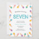Faites une fête de 7 ans avec une crème glacée pour votre petit ! Cette adorable invitation à l'anniversaire comporte une glace couleur arc-en-ciel colorée aquarelle qui est mignon et parfait pour un anniversaire d'été. Tous les détails, y compris (sauf l'âge), sont personnalisables. (D'autres âges et couleurs sont aussi disponibles dans ma boutique !) © Mini Moi Prints