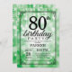 80. Geburtstagseinladung mit Grün-String-Leuchten mit grünem Glitzer Hintergrund. Grün Geburtstag. Erwachsener Geburtstag. Männer oder Frauen laden ein. 13. 15. 16. 18. 20. 21. 30. 40. 50. 60. 70. 80. 90. 100. Jegliches Alter.