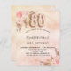 Eine Rose Gold, rot rosa Farbverlauf Hintergrund. Die Einrichtung ist mit Rose-Gold und rosa Blumen, Rose, Pampas-Gras dekoriert. Personalisieren und fügen Sie einen Namen und Party-Details hinzu. Nummer 80 wird mit einem Schriftart im Ballonstil geschrieben. 1 Blatt = 1 Einladung mit Druckkante bis Kante.