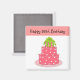 Ein hübsch rosafarbener, moderner Kuchen mit weißen Polka-Punkten... ein amüsanter Geburtstagsmagnet. Drücken Sie einen mit einer Geburtstagskarte ein.