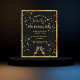 Une carte d'invitation à la fête du 80e anniversaire moderne et tendance pour une femme. Un arrière - plan noir classique, avec cadre et flûtes en faux or, verre et bulles, lettres dorées. Modèles pour vos informations de fête. Retour : arrière - plan blanc.