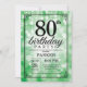 Invitation d'anniversaire 80e avec des lampes à cordes vertes avec Arrière - plan de Parties scintillant vert. Anniversaire Vert. Anniversaire adulte. Hommes ou femmes Anniversaire Invitation. 13e 15e 16e 18e 20e 21e 30e 40e 50e 60e 70e 80e 90e 100e, n'importe quel âge.