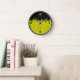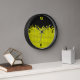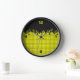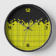 Maßgeschneiderte Wanduhr für einen Computerfreak oder Videospieler mit gelbem Pixel Raster. Der schwarze Hintergrund kann in jede andere Farbe geändert werden.
