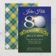 Celebrate a milestone in style with this elegant 80th birthday golf-themed invitation—perfect for honoring a lifetime of memories with a fun, sophisticated design guests will love. Featuring a golf ball, banner and fun party font. Backer is green and gold plaid.