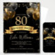 80th Birthday Invitation Template: Black Gold Ball