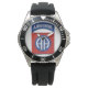 Uhr, Vintage Männeruhr mit schwarzem Lederarmband