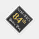 This opulent and luxurious birthday paper napkin design features a custom name and the message “84th Birthday Party”. The large number “84th” has an imitation/faux gold-inspired coloring pattern, and the words “Birthday Party” are in fancy script-style text. The background is colored black by default (although it can be customized). Ornate, fancy paper napkins like this might be used at a birthday celebration/party being held to honor somebody’s eighty fourth birthday. [~Z0000565]