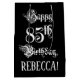 Dieses opulente und formale Geburtstagsdesign zeigt die Meldung "Happy 85 th Birthday" im eleganten Text im Skriptstil auf schwarzem Hintergrund. Es enthält auch einen benutzerdefinierten Empfängernamen. Eine aufwändige Geburtstagsgeschenktasche wie diese kann bei Geschenken oder Geschenken zur Feier des fünfundachtzigsten Geburtstages von jemandem verwendet werden. [~Z0000557]