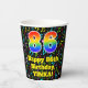Dieses bunte und unterhaltsame musikalische Geburtstagszeitpapier-Cup-Design zeichnet sich durch eine große Zahl "86" mit einem inspirierten Regenbogenspektrum-Gefälle aus, zusammen mit der Meldung "Happy 86 th Birthday" und einem individuelle Name. Der Hintergrund weist ein buntes Farbmuster verschiedener Musiknoten und Symbole mit verschiedenen Größen und Farben auf. Farbenfrohe, lebendige Papiertassen wie diese könnten Spaß machen bei einer Geburtstagsfeier/Feier, die zur Feier des sechsundachtzigsten Geburtstages von jemandem abgehalten wird. [~Z0000541]