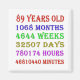 89. Geburtstag, der die Jahre, Tage, Monate, Stunden und Minuten hinunter zählt. Ein Geburtstagsgeschenk zum Nachdenken! Es wurden die Leap-Jahre berücksichtigt!