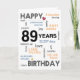 Geburtstagskarte Inside: Möge Ihr besonderer Tag mit Freude, Lachen und unvergesslichen Momenten gefüllt werden, die Sie für viele Jahre lieben können. Herzlichen Glückwunsch zum Geburtstag und immer an das Glück der Welt! Beschreibung: Feiern Sie den bemerkenswerten 89. Geburtstag mit unserer charmanten 89. Geburtstagskarte! Egal, ob es für Ihre geliebte Mutter, Ihren lieben Vater, lieben Bruder oder eine geliebte Schwester ist, diese Karte bietet eine wunderbare Möglichkeit, Ihre aufrichtigen Wünsche zu vermitteln und ihren besonderen Tag mit Liebe und Glück zu erfüllen. An der Vorderseite der Karte steht "Happy Birthday" neben der prominenten Zahl 89, die Jahrzehnte, Jahre, Monate, Wochen, Tage, Stunden, Minuten und Sekunden symbolisiert und die Bedeutung dieses außergewöhnlichen Meilensteins unterstreicht.