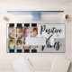 Schreibtischmatte für einen Laptop / Computer. Geschenke Idee für jedermann. Ersetzen Sie die 8 Fotos durch Ihre eigenen Lieblingsbilder. Positive Vibes. Grau, weiß und schwarz mit Liebe und Streifen.