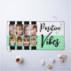 Tapis de bureau pour un ordinateur portable / ordinateur. Idée cadeau pour n'importe qui. Remplacez les 8 photos par vos photos préférées. Vibes positives. Vert, blanc et noir avec un coeur d'amour et des rayures.