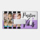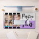 Tapis de bureau pour un ordinateur portable / ordinateur. Idée cadeau pour n'importe qui. Remplacez les 8 photos par vos photos préférées. Vibes positives. Violet, blanc et noir avec un coeur d'amour et des rayures.