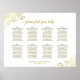 Ce magnifique tableau de sièges mariage présente un design chic et sophistiqué avec du texte en or sur un arrière - plan blanc. Le titre est une élégante calligraphie de script lisant : s'il vous plaît trouver votre table. Les coins sont décorés de fraises en fausse feuille d'or dans un motif floral délicat. Comprend 8 tables ou 80 personnes avec 10 places par table. Une belle façon d'aider vos clients à trouver leurs tables à la réception tout en ajoutant une touche de style.