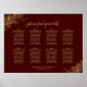 Ce magnifique tableau de sièges mariage présente un design chic et sophistiqué avec du texte en or sur un arrière - plan de couleur chocolat ou auburn. Le titre est une élégante calligraphie de script lisant : s'il vous plaît trouver votre table. Les coins sont décorés de fraises en fausse feuille d'or dans un motif floral délicat. Comprend 8 tables ou 80 personnes avec 10 places par table. Une belle façon d'aider vos clients à trouver leurs tables à la réception tout en ajoutant une touche de style.