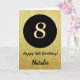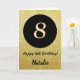 8e Joyeuse Carte de Parties scintillant Noir et Or Anniversaire avec nom personnalisé. Pour plus de personnalisation, cliquez sur le bouton "Customiser" et utilisez notre outil de conception pour modifier ce modèle.