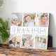 Mit dieser sechs Foto Collage-Plakette kreieren Sie ein süßes Geschenk für Oma. "GRANDMA" erscheint in der Mitte in schick-grauem Schriftsatz, mit der eigenen Nachricht und den Namen der Enkel überlagert.