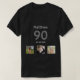 Für einen 90. Geburtstag als Geschenk oder für das Party. Eine Collage von 3 Fotos von Freunden, Familie, Interesse oder Haustieren. Personalisieren und fügen Sie seinen Namen, Alter 90 und ein Datum. Geburtsdatum oder Geburtsdatum der Geburtstagsparty. Grauer und weißer Text.