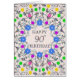 90. Geburtstagskarte. Ein herrliches abstraktes Muster mit Blume und Diamanten. Eine sehr hübsche, feminine und stilvolle Art, "Happy Birthday" zu sagen. Ein ungewöhnliches Design, das sich herausstellt. Senden Sie Ihre Geburtstagswünsche elegant und eloquent. Alle Diamanten auf dieser Karte sind gedruckt.