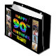 Dieses fröhliche und fröhliche Geschenktütendesign mit dem Motto "HAPPY 90 TH BIRTHDAY", mit einem farbenfrohen Regenbogenmuster und einem individuell anpassbaren Empfängernamen, ist ein inspiriertes Farbverlaufsmuster. Die Fotos an den links und rechts von der Regenbogen-gemusterten Nachricht an der Kartenvorderseite können personalisiert sein, vielleicht mit Fotos des Empfängers, der Familie und Freunden des Empfängers und/oder dem/den Absender(en) des Geschenks. Eine Geschenktasche wie diese kann verwendet werden, wenn Geschenke oder Geschenke umhüllt werden, die jemandem zur Feier seines neunzigsten Geburtstages gegeben werden. (Fotografie © Storytree Studios, Stanford, CA.) [~Z000668]
