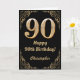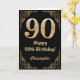 90. Geburtstag Schwarz-Gold-Glitzer-Rahmen Karte