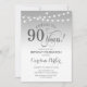 Einladung zum 90. Geburtstag. Elegantes silberweißes Design mit Feenschärfenlampen und Script-Schriftart. Feiert bis 90 Jahre. Kann in jedem Alter personalisiert werden! Nachricht, wenn Sie weitere Anpassungen benötigen.