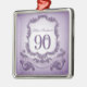 Design im Wappen-Stil in lila Farben mit großer 90. + "BIRTHDAY FEIERUNG" auf einem Band. Design auf quadratischen Metall-Ornament mit Namen. Sie können den Namen (Farbe, Schriftart, Größe und Position) einfach ändern, indem Sie auf die Schaltfläche Anpassen klicken. Erhältlich mit Design für 60., 70., 80., 95. Geburtstag. Entsprechende Geburtstagseinladung, Geburtstagsgeschenk Save the Date, Geburtstagskarte (Spiralheft), Vorgeschenkschachtel, Geschenktafel, Party (Papierserviette und Papiertüte), Kissen, Tasse und andere Geburtstagsgeschenke für Großmütter.