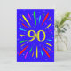 Einladung zum 90. Geburtstag. Fügen Sie einen Namen und Ihre Details hinzu, um eine fantastische Geburtstagsfeier-Einladung zu machen. Eine explosive Party Zeiteinladung! Was für eine wunderbare Art, Party Einladungen zu verschicken. Die Worte "Party Time" in hellen Farben mit einer Explosion von hellen Farben und Sternen.