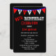 Diese lustige 90. Geburtstagsfeier feiert 90 mit stilvollen Fahnen in Rot und Weiß an der Spitze. In den Flaggen wird das Wort "GLÜCKLICH" geschrieben. Unter den Flaggen erscheinen die Worte "90th Birthday Celebration", wie auch alle Ihre 90th Geburtstag Party Einladung Details. Dies ist eine großartige moderne Einladung zu einem 90. Geburtstag. Copyright henishouseuse paper