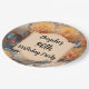 Feiern Sie jedes Alter mit einer schönen, individuell anpassbaren Papierplatte. Herrliche Rosa- und Orangenchrysanthemen mit blauen Schmetterlingen und üppiger Vegetation. Ein elegantes und dennoch hübsches Design.
