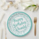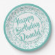 90. Party Random Number Pattern Aquamarin/weiß Pappteller