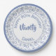 90. Party Random Number Pattern Blau/Weiß Pappteller