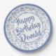 90. Party Random Number Pattern Blau/Weiß Pappteller