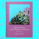Ce livre d'hôtes de 90e ou 95e Carnets spiraux est décoré avec ma photo originale d'un cactus de poire violet et agave sur un arrière - plan turquoise. La couleur Arrière - plan est "Orchidée rayonnante". Le texte est blanc. Facile à customiser, il suffit de modifier ou de supprimer le texte de l'exemple. Photo originale de Marcia Socolik. Tous droits réservés © 2016 Alan & Marcia Socolik.